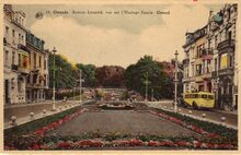 Albert, N° 18. - Ostende - Avenue Léopold vue sur l'Horloge fleurie. - Bijgekleurde kaart. De Leopoldlaan, richting het Leopoldpark met het bloemenuurwerk