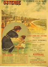 Afdruk van affiche Chemin de fer du nord. 12 Journées de courses de cheveaux. 6 août grand prix d'Ostende. 17 Juillet Régates Internationales. 15 Août Régates à l'aviron. Tir aux pigeons. Kursaal deux concerts par jour