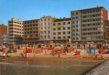 De Albert I-promenade ten westen van het Kursaal. Na de Tweede Wereldoorlog werden de vernielde hotels niet heropgebouwd. De verandering in het toerisme maakte plaats voor flatgebouwen.