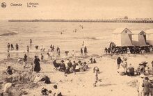 Nels. - Ostende - L'estacade. The Pier. - Strandrecreatie op het Klein Strand. Op de achtergrond, het Weststaketsel