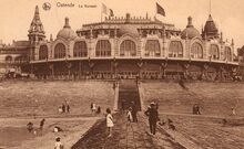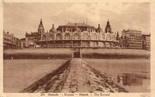 Nels, Série Ostende, N° 91. - Ostende - Le kursaal. - De noordgevel van het derde Kursaal langs de Zeedijk. Vooraan, het Groot Strand en golfbreker.
