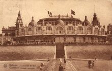 [Phototypie d'Art, 10, r P.V. Jacobs, Bruxelles]. 270. Ostende - Kursaal. Ostend - The Kursaal. De noordgevel. Vooraan het "groot strand" en golfbreker. Links Kursaal-Oosthelling
