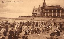 Le Bon, éditeur, Ostende. - Strandrecreatie op het Groot Strand nabij de westelijke gevel van het tweede Kursaal langs de Zeedijk