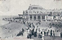 Ostende - Le Kursaal. - Oostende in de Belle Epoque. De westgevel van het tweede Kursaal langs de Zeedijk. Plekje, ook "Petit Nice " genaamd.