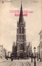 Construite récemment pour remplacer l'ancienne église (datant de 1717) détruite par l'incendie;magnifique église ogivale dont les planssontdus à l'architecte De la Conserie. A l'intérieur monument commémoratif de Marie-Louise (sic) d'Orleans première reine des Belges enlevée à l'affection de ses sujets à Ostende le 11 octobre 1850
