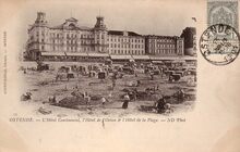 Neurdein/ND Phot/Godtfurneau 33. - Ostende - L'Hôtel Continental, l'Hôtel de L'Océan & l'Hôtel de la Plage. Het Hôtel de la Plage werd uitgebaat van 1895 tot 1911 door de Compagnie Internationale des Grands Hotels, een dochtermaatschappij van de Wagons-Lits. Strandrecreatie op het Groot Strand.