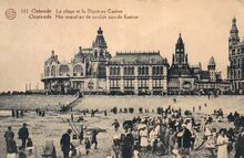 Albert, N° 101. Ostende - Le plage et la Digue au Kursaal. Oostende - Het strand en de zeedijk aan de Kasino (sic). - Strandrecreatie op het Groot Strand nabij de westelijke gevel van het derde Kursaal langs de Zeedijk.