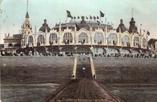 Nels. Série 13, N°113. - Ostende - Le Kursaal de face. - De noordgevel van het derde Kursaal langs de Zeedijk. Vooraan, het Groot Strand en golfbreker.