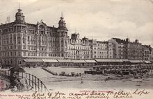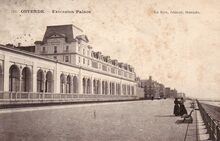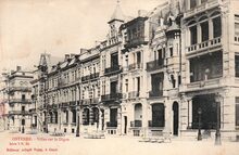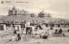 Het Royal Palace Hotel, de noordzijde gelegen langs de Zeedijk. Hier richting Mariakerke. Geopend op 12 augustus 1899 door de " Compagnie Internationale des Grands Hotels", een dochtermaatschappij van de Wagons-Lits. Het gebouw telde vierhonderd kamers en was daarmee het tweede grootste hotel van West-Vlaanderen. De uitbating bleek onrendabel en het hotel werd in 1907 overgelaten aan de n.v. Royal Palace Hotel, die echter in 1911 reeds failliet ging. Overgenomen door de groep Les Palaces d'Ostende die in 1933 bankroet ging.