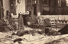 De zusters zijn van de congregatie van de Zwartzusters van Bethel, en hun klooster was in de Kaaistraat. Bij de beschieting vanuit zee vielen er drie dodelijke slachtoffers. Vooraan ligt het lijkje van de 5-jarige Adriana Declerck, daarachter het lichaam van Augusta Corveleyn, echtgenote Dispersyn, en rechts ligt de 18-jarige Paula Dufour. De Photografische Abteilung van de Marine Bücherei verspreidde deze afgedrukte foto in grote oplage als anti-Britse propaganda