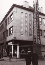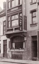 Het "Huis Priem" in de Kapellestraat 66, tegenaan Jozef II-straat. Verkoop van wapens, visgerei enz.