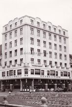 Het "Hotel du Parc", hoek Leopold II-laan en Marie Joséplein. De geparkeerde auto is een "traction avant" Citroën;