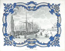 Formaat : 14 x 17,5 cm. -Een raderstoomboot en zeilschepen aangemeerd in de handelsdokken langs de Keizerskaai