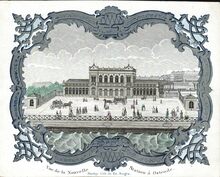 Formaat : 13,5 x 17 cm. - Vue de la Nouvelle Station à Ostende. Zilver ingekleurd. - Het eerste spoorwegstation van Oostende. Geflankeerd door twee octrooiengebouwtjes. Gebouwd naar de plannen van architect Auguste Payen en ingehuldigd op 1 juli 1844. Een hekken beschermd de reizigers en vooraan, het goederenspoor. Het station was parallel gelegen met het tweede handelsdok langs de Keizerskaai.