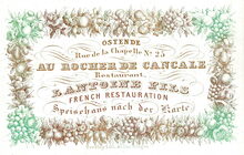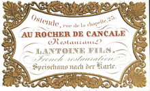 Formaat : 5,4 x 8,7 cm. - Ostende, rue de la chapelle,23. Au Rocher de Cancale restaurant - Lantoine fils - French restauration - Speisehaus nach der Karte.