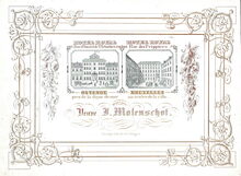Formaat : 11,3 x 15,6 cm. - Hotel Royal Rue d' Ouest et de St Sebastien Ostende pres de la digue de mer. Hotel Royal Rue des Frippiers Bruxelles au centre de la ville tenu par Veuve J.Molenschot. Het hotel was gelegen in de Weststraat 14