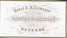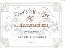 Formaat : 11,1 x 14,9 cm. - Hôtel d'Allemagne tenu par C.Dalimier à Ostende. Deutscher Hof. German Hotel. Table d'hôte à 1 & 4 heures.