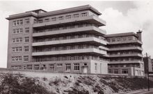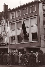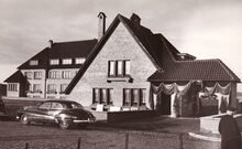 Formaat : 18 x 13 cm. - De lokalen werden ingehuldigd in december 1958 in aanwezigheid van Prins Albert. Links de inrit van garage Stoops