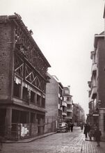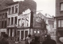 Formaat : 13 x 18 cm. - De huizenrij in de Hendrik Serruyslaan, tussen de Sint-Sebastiaan- en de Wittenonnenstraat wordt gesloopt. Hier zou enkele jaren later Residentie Le Neuilly gebouwd worden. De opening in de huizenrij was de toegang tot de binnenkoer van de oude afspanning Sint-Sebastiaan. Deze binnenkoer was multifunctioneel : er waren stallingen, garageboxen, staanplaats voor circus... enz.