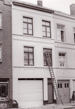 Formaat : 18 x 13 cm. - Woningen in de Stuiverstraat 184-186. Links het uitstalraam van een beenhouwerij