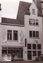 Formaat : 18 x 13 cm. - Kunstgalerij en café 't Kroegske op het Paulusplein. We zien uitbater en kunstschilder Joris Houwen met een van zijn werken. Op de gevel van de galerij zien we twee muurschilderingen