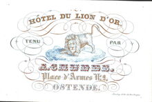 Formaat : 7,8 x 11,7 cm. - Hôtel du Lion d'Or tenu par J. Cnudde Place - d'Armes N° 2 - Ostende.