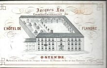 Formaat : 11 x 14,1 cm. - Hôtel de Flandre tenu par P.Fontaine Ostende. Salle de Bains. Table d'Hôte à 1 et 5 heures et Diners particuliers. Voitures de l'Hôtel aux arrivées des Navires a Vapeur et Convois du Chemin de Fer. Cet Hôtel se trouve prés du nouveau Pont de la Digue de Mer.