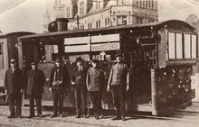 Groep wagon-Lits personeel voor trein (Voor 1914)