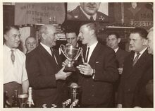 7 Foto's 18 x 13. Uitreiking van de prijzen tornooi Missiaen 1950.