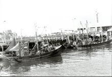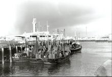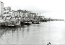 Formaat : 13 x 18 cm. - Vissersvaartuigen nabij het Carferrygebouw