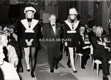 Formaat :Β 13 x 18 cm. - Intronisatie van RaoulΒ BonnelΒ tot ridder in de ConfrΓ©rieΒ van de Rat Mort in de ridderzaal van het Casino-Kursaal
