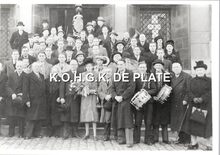 V.l.n.r. : de dames W. Scott, Robert Elleboudt, Decrop, Hieldegem, Van Damme, Elvire Temepere, R. Lanoye, V. Wittemans, Lauwereins, Degroot, Sorrel, De Stoop Β en kinderen R. Jacobs, J. Somville en J. Elleboudt.
