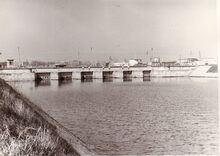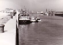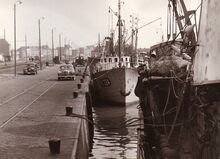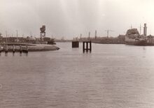 Foto 18 x 13. Het Tijdok. Op de achtergrond de vismijn en de vierde vuurtoren "Lange Nelle"