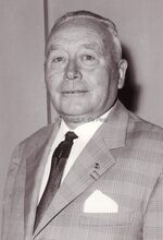 Foto van een groep supporters van de maatschappij "De Buffalo's" (supportersclub van ASO genomen voor het café op de hoek van de Stuiverstraat en de Torhoutsesteenweg (met o.a René Menu en Alfons Laridon en de paalzitter Van Slembrouck) + foto van de paalzitter Van Slembrouck.