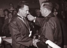 Rechts Filip GHEYSEN voorzitter perskring Oostende met een onbekende.