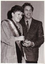Foto z/w 13x18. Will Tura met dame lid van het jaar weight watchers