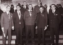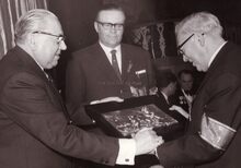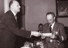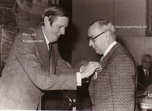 Voorzitter Felix PortaΒ overhandigt een oorkonde (?) aanΒ .....DEGRYZEΒ (?)