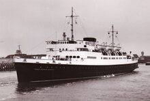 Gebouwd in 1948 bij Cockerill (Hoboken) en in dienst vanafΒ 3 juliΒ 1949. Het was de eersteΒ volwaardige carferry in dienst op het kanaal. Het schip met een lengte van 113,65 meter, kon circa 100 personenwagens inschepen. Het werd uitgerust met twee Sulzer dieselmotoren met een totaal vermogen van 7600 P.K. De eigenaar kon zelfΒ zijn wagen aan boord rijden. In 1952 werdΒ het schipΒ omgedoopt tot "Prinses Josephine-Charlotte". Het oosterstaketselΒ met de tijseinpost en op de achtergrond de vierde vuurtoren "Lange Nelle" in opbouw.