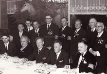 Een banket van de veteranen Albert I (Albertisten) waarop blijkbaar ook eretekens werden uitgereikt.Β Uiterst links vooraan de burgemeesterΒ van Bredene, Albert CLAEYS.