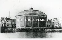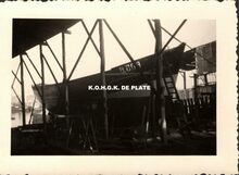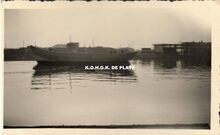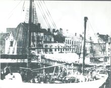 Formaat : 10,5 x 15,5 cm. - Opschrift :Β Bataille de l'Yzer. Het gebouw was gelegen op het deels gedempte derde handelsdok. Hoek Stockholmstraat en Vindictivelaan