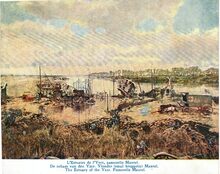 Les Γ©cluses de Nieuport. l'ArrivΓ©e des FranΓ§ais. - De sluizen van Nieuwpoort. De aankomst der Franschen. - The sluices of Nieuport. The arrival of the Franch troops.