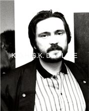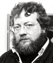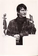 Foto z/w 13x18. Beeldhouwer Stephen Christensen.