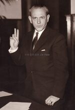 Formaat : 13 x 18 cm. - Burgemeester Jan Piers en de Lord-Mayor van Manchester op het Zeeheldenplein na hulde aan het Nationaal Monument der Zeelieden. Links achter hen, schepen John Lauwereins en bureauchef Holvoet