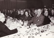 Een banket van eerder bejaarde mensen Eerste dame van rechts mevrouw OCKET (?).
