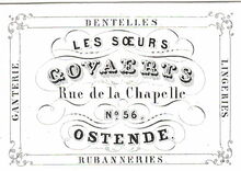 Formaat : 3,1 x 5,1 mm. - Les soeurs Govaerts, Rue de la Chapelle N° 56 Ostende. Dentelles, Lingeries, Rubanneries, Ganterie.