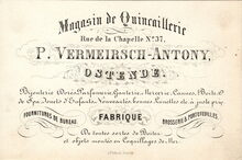 Formaat : 9 x 13 cm. - Magasin Français Anglais & des Indes. - S. De Pachtere, Rue de la Chapelle N° 7 Ostende.