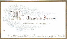 Formaat : 4,8 x 8,2 cm. - Melle. Charlotte Jossen, tailleuse en robes, Rue St. François N° 34 prés du marché aux poissons Ostende.