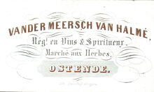 Formaat : 53 x 90 mm. - Vander Meersch Van Halmé Nég. en Vins & Spiritueur Marché aux Herbes Ostende.