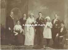Formaat : 26 x 36 cm. - Groepssfoto met de familie tijdens het huwelijk van EmiEL Vroome uit 1914 (later Schepen van de Stad Oostende)