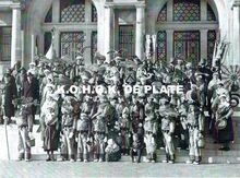 Formaat : 28 x 38 cm. - Groepsfoto op de trappen van het Thermae Palace
